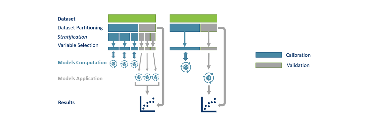 A benchmarking step was needed to develop and retrieve the model design providing the best performances. Multiple tests were completed during the benchmarking phase, using different model regression algorithms and combinations of steps on the dataset calibration (with or without stratification, variable selection methods, etc.). Such a benchmarking testing different choices at different levels allowed the selection of the best model for the final yield estimation and yield forecast.